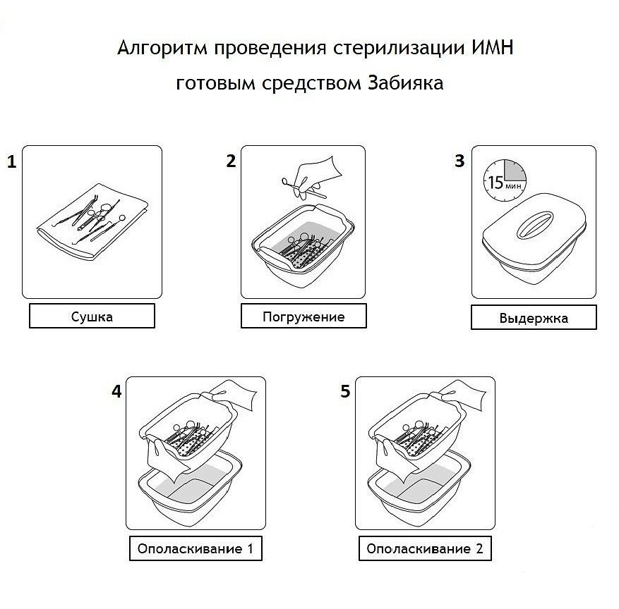 Химическая стерилизация средством занимает всего 15 минут, что позволяет обрабатывать инструменты даже между пациентами.